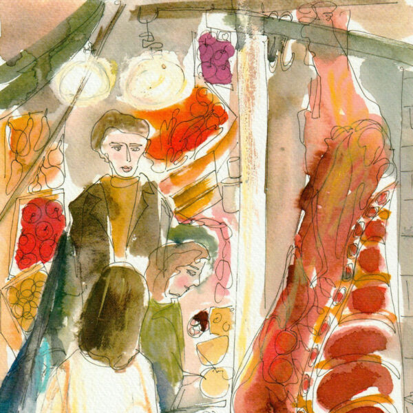 Stampa fine art da disegno originale ispirato alla tela di Renato Guttuso “Vucciria”.